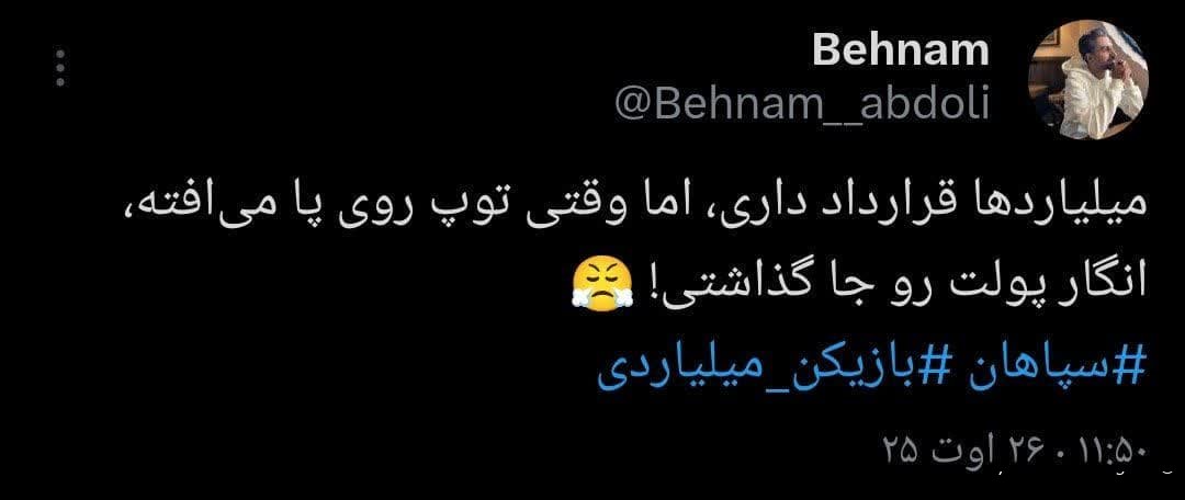هوادار طلایی مظلومترین آدم این ماجراست؛ او تنها کسی است که پول میلیاردی نمیگیرد، قرارداد کلان ندارد، پشت میز ننشسته… اما تمام تاوان را او میدهد: تاوان چه چیزی مشخص نیست.